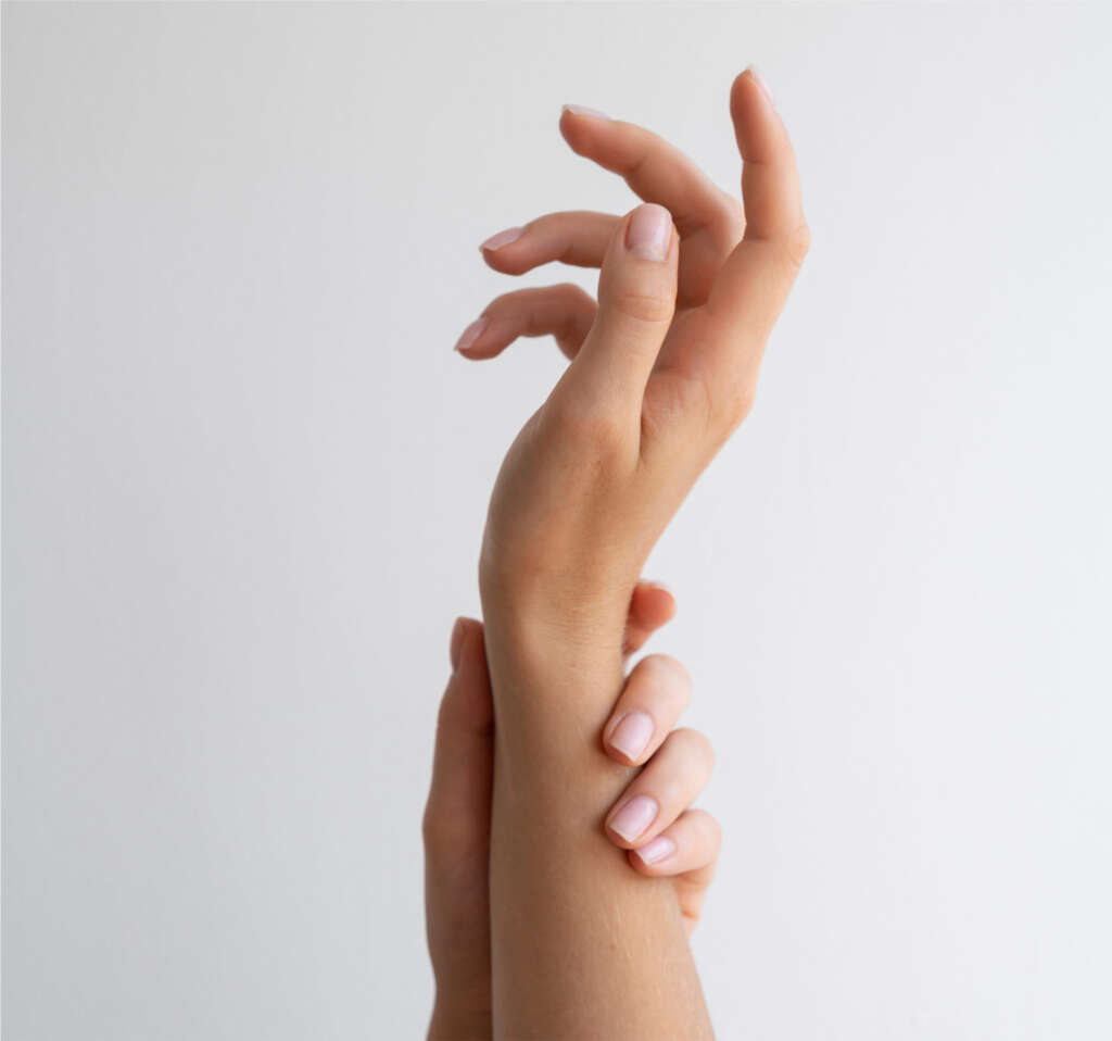 La pelle delle mani è estremamente sensibile e delicata, poiché è frequentemente esposta a sostanze chimiche aggressive. A differenza di altre parti del corpo, le mani vengono lavate spesso, anche più volte al giorno. Inoltre, sono costantemente a contatto con gli agenti atmosferici. I raggi UV del sole e l’azione del vento compromettono l’integrità delle fibre di sostegno del derma. Questo non solo impoverisce il film idrolipidico, ma può anche causare l’accumulo di pigmento melanico in alcune zone circoscritte della pelle, favorendo la formazione di macchie cutanee.